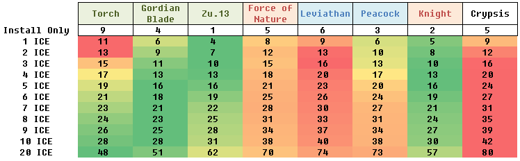 pretty much any Ice for 4 or 5 credits, but only rarely for less than that. One wrinkle in the comparison table – I assumed